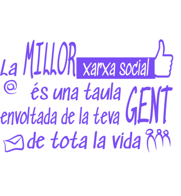 Frase decorativa en catalán. Ideal en las paredes de un bar o restaurante o en la cocina de casa, que te anima a celebrar la vida rodeada de gente y olvidar la tecnología.