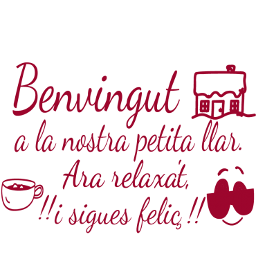 Frase decorativa en catalán para dar la bienvenida a los invitados en casa. Se puede estampar en la entrada o hall del hogar.